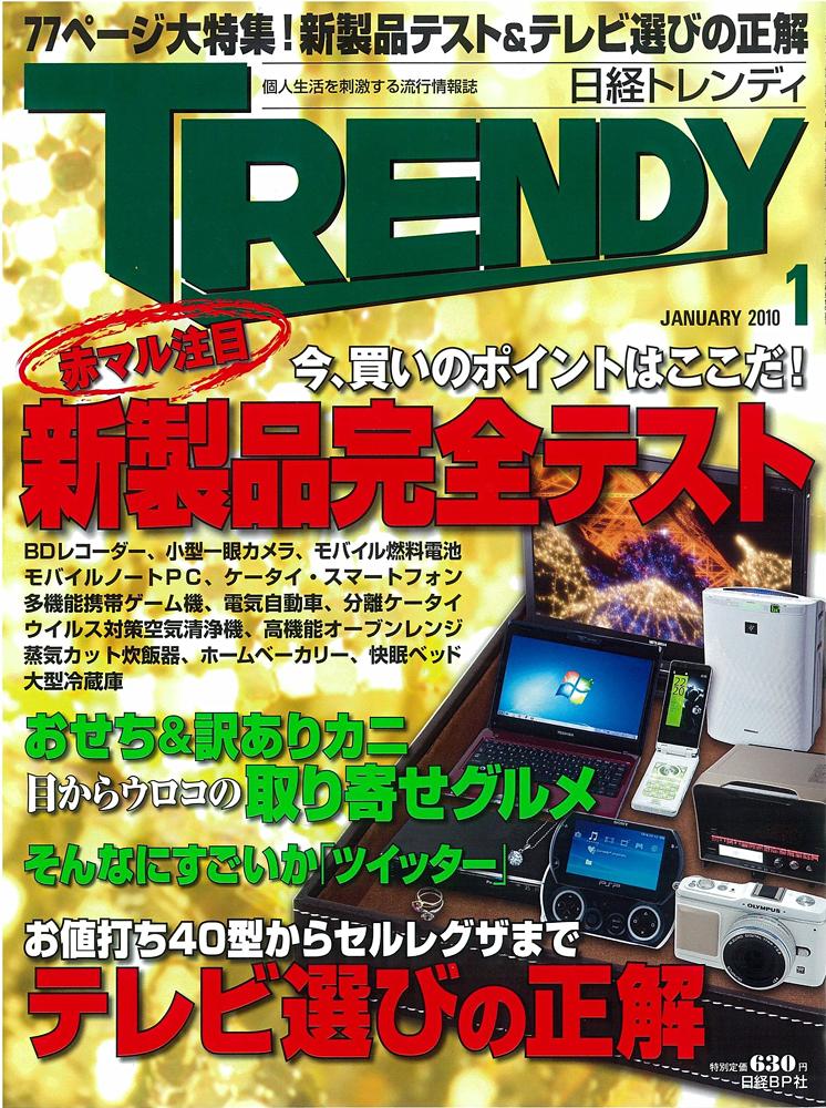 日経 TRENDY (トレンディ) 2010年 01月号 [雑誌] 価格: 630円 レビュー評価: 4.28 レビュー数:32 日経BP出版センターポイント5倍この雑誌の新刊が登録されたら新着メールを通知する※新着メール登録ページの「登録名」に商品コードが表示されますが、不具合ではありませんのでご注意下さい。発売日:2009年12月04日登録情報サイズ:A4変楽天ブックス雑誌コード:17101JAN:4910171010103※クリックで拡大します※クリックで拡大します※クリックで拡大します【赤マル注目】 新製品完全テスト今、絶対に損はできない!【デジタル機器】◆「2011年」目前で買い替え必須! 最新BDレコーダーの○と×◆「一眼風写真」は撮れるか。 小型デジタル一眼 vs 高級コンパクトカメラ◆ネットブックは時代遅 Supported by 楽天ウェブサービス |